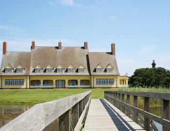 Rising 162 feet in the air, the Currituck Lighthouse is stunning to behold with a deep red façade that stands out nicely against the watery backdrop.